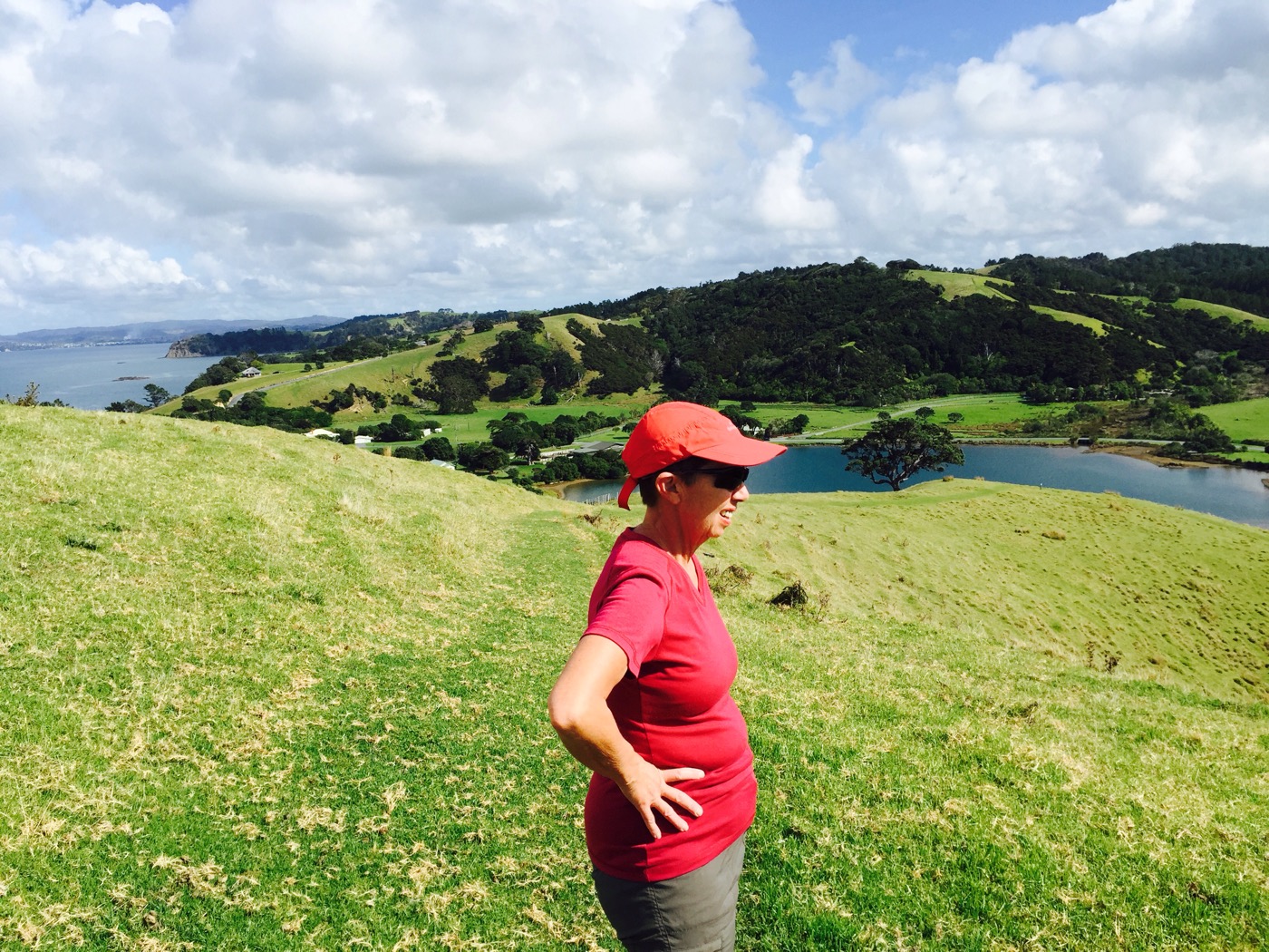 The initial hour of the coastal walk is through undulating farm land with patches of bush. We noticed the birdsong even in this reasonably open country. The views across to Kawau Island are stunning although the regular gullies that the track undulated through were a not so welcome in the heat.