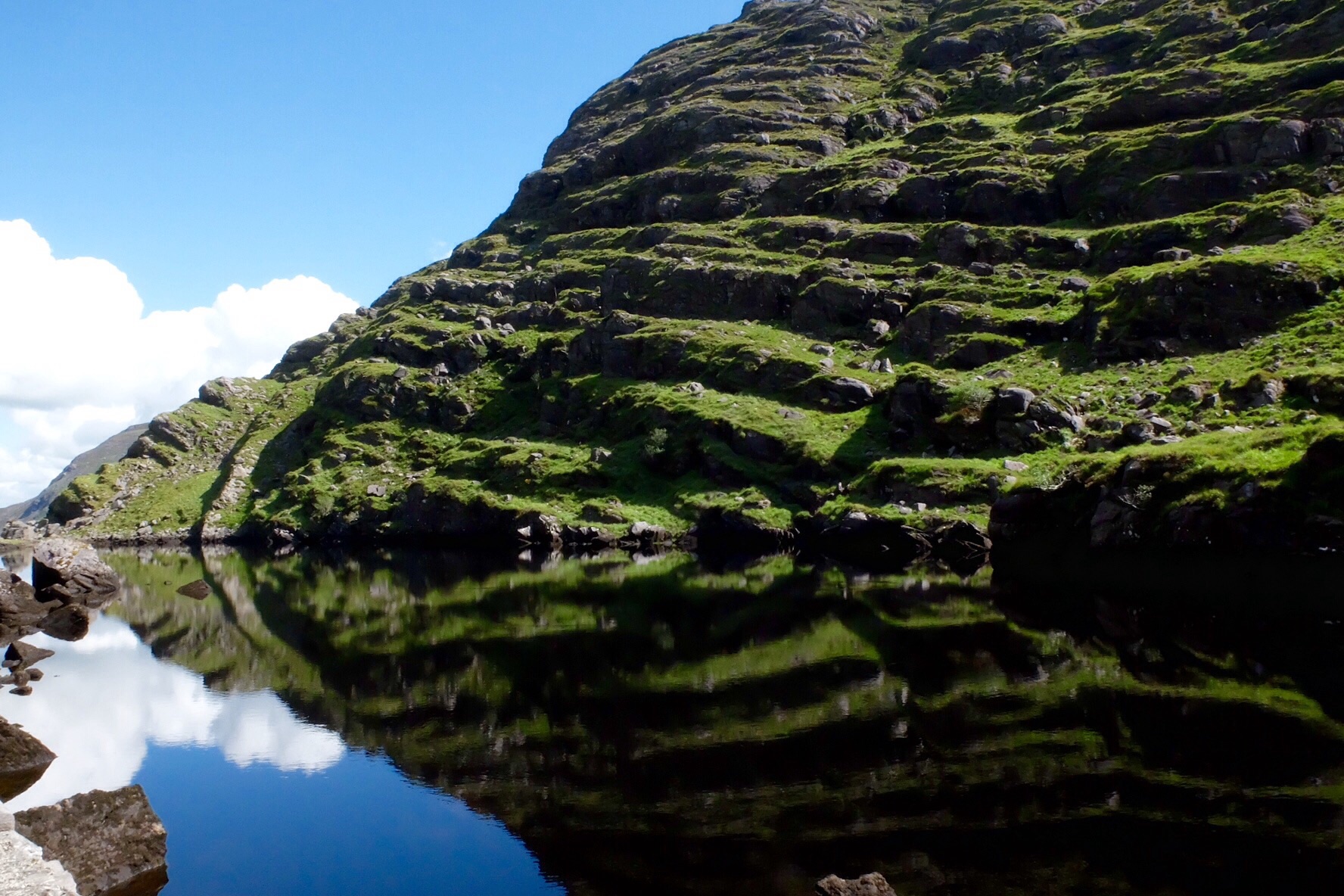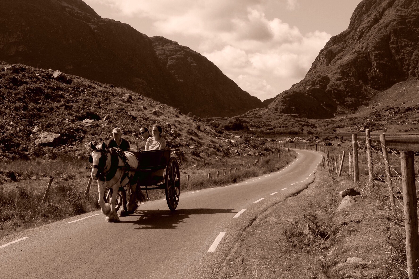 In Kerry, we walked the Dunloe Gap and Black Valley catching a small 12 person boat back via three lakes and a connecting river. The walk was along a road that carried very little car traffic but a lot of horse and trap traffic which, was the way most people completed the journey. At 11km and with the best weather day we have experienced, walking was the only way to go.