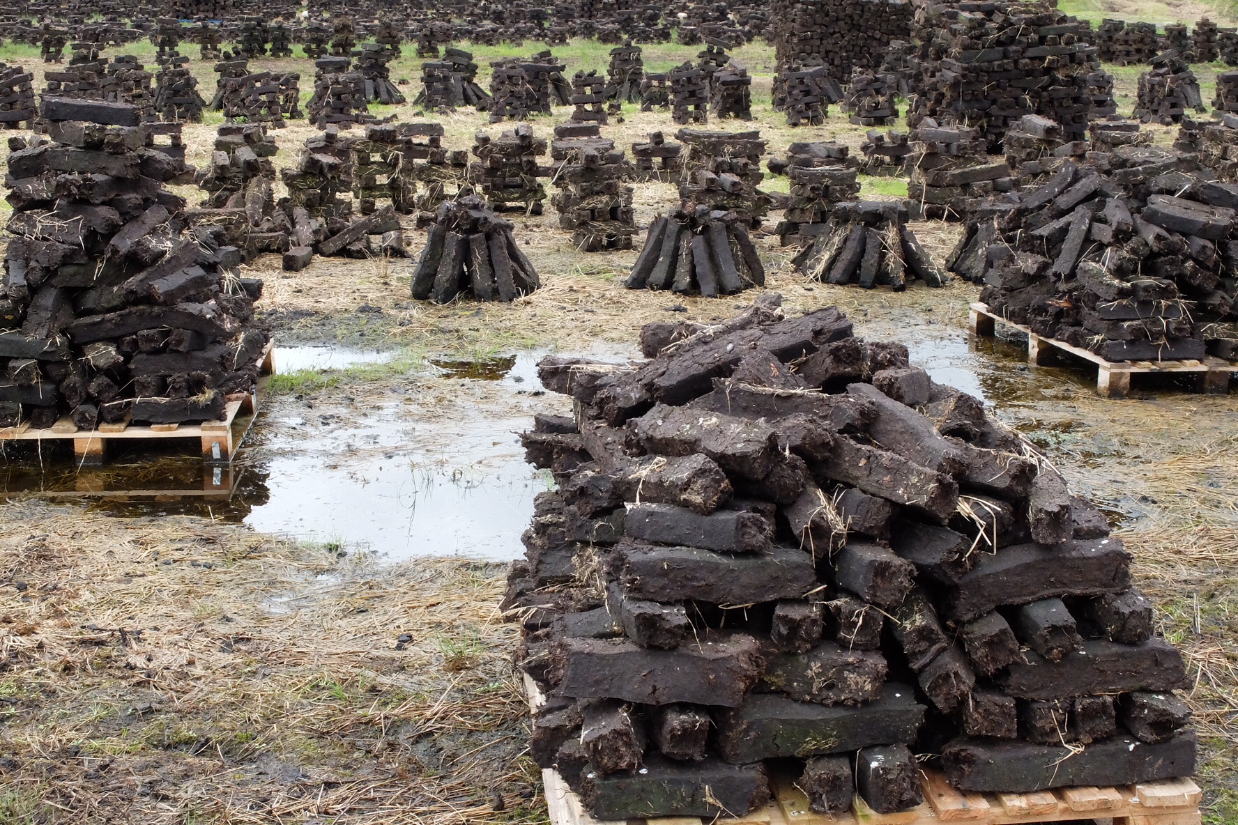 Today we got back onto bicycles and biked out to the local bog. We were assured that the lanes would be quiet and, apart from a few frenetic farmers on their tractors who were endeavouring to get hay in while the rain held off, that turned out to be true. Our fears of ending up as “road kill” were baseless.