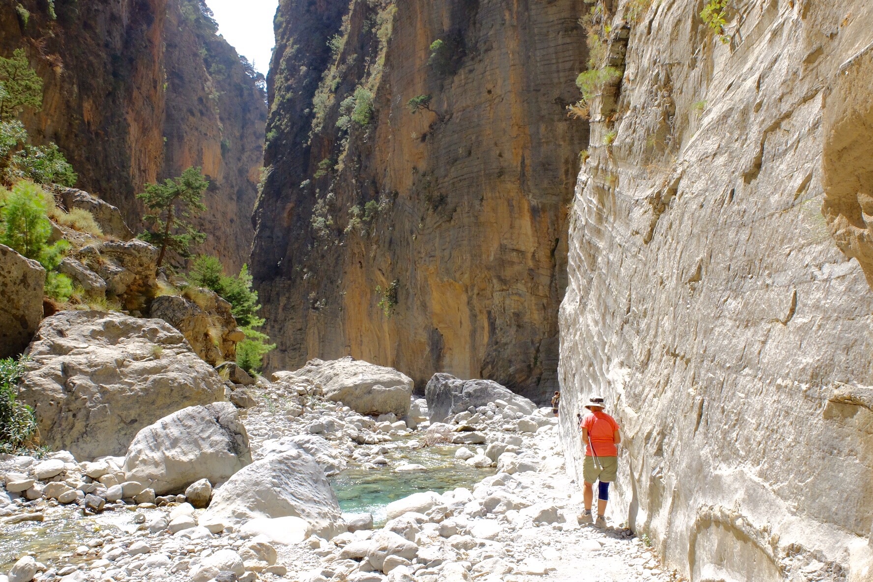 There was one walk that we could not apply those rules to because it involved a very early departure by bus (6:15am) and a late return (around 8:30pm). It was the walk down the Samaria Gorge which despite the term DOWN, was still a strenuous outing with a combination of heat in the last section and a rough track underfoot for a signifcant part of the track.