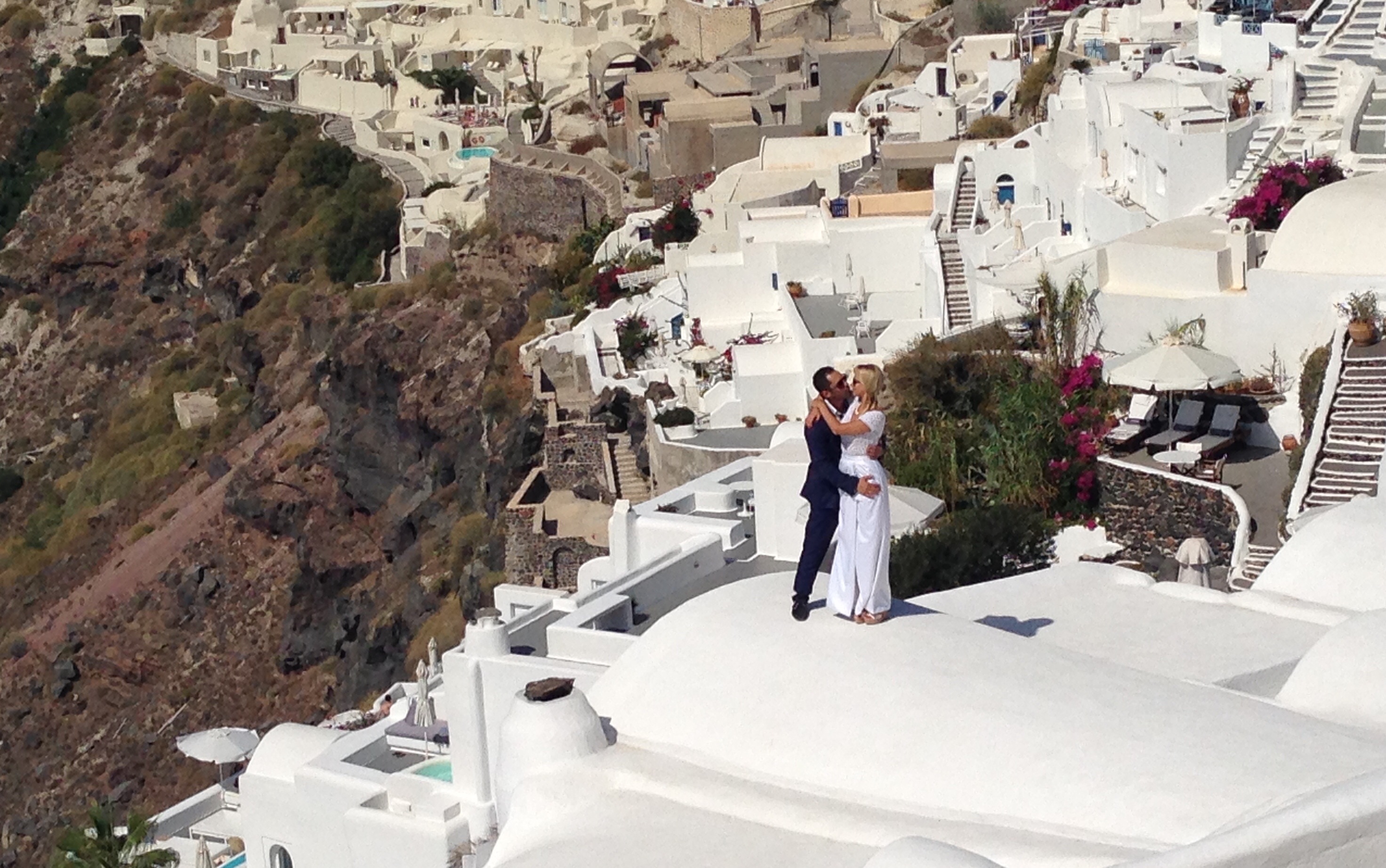 We have seen little children being dragged around in their “sunday best” to undergo similar photo shoot sessions, what looked like a magazine shoot below our cave house at 7:30am this morning and, I witnessed a group of young girls going through various gymnastic poses (handstands, etc) on the precipice. I have a few ideas for Ruth for our walk along the crater to Fira (the main town) tomorrow that will make great shots for the next blog post.