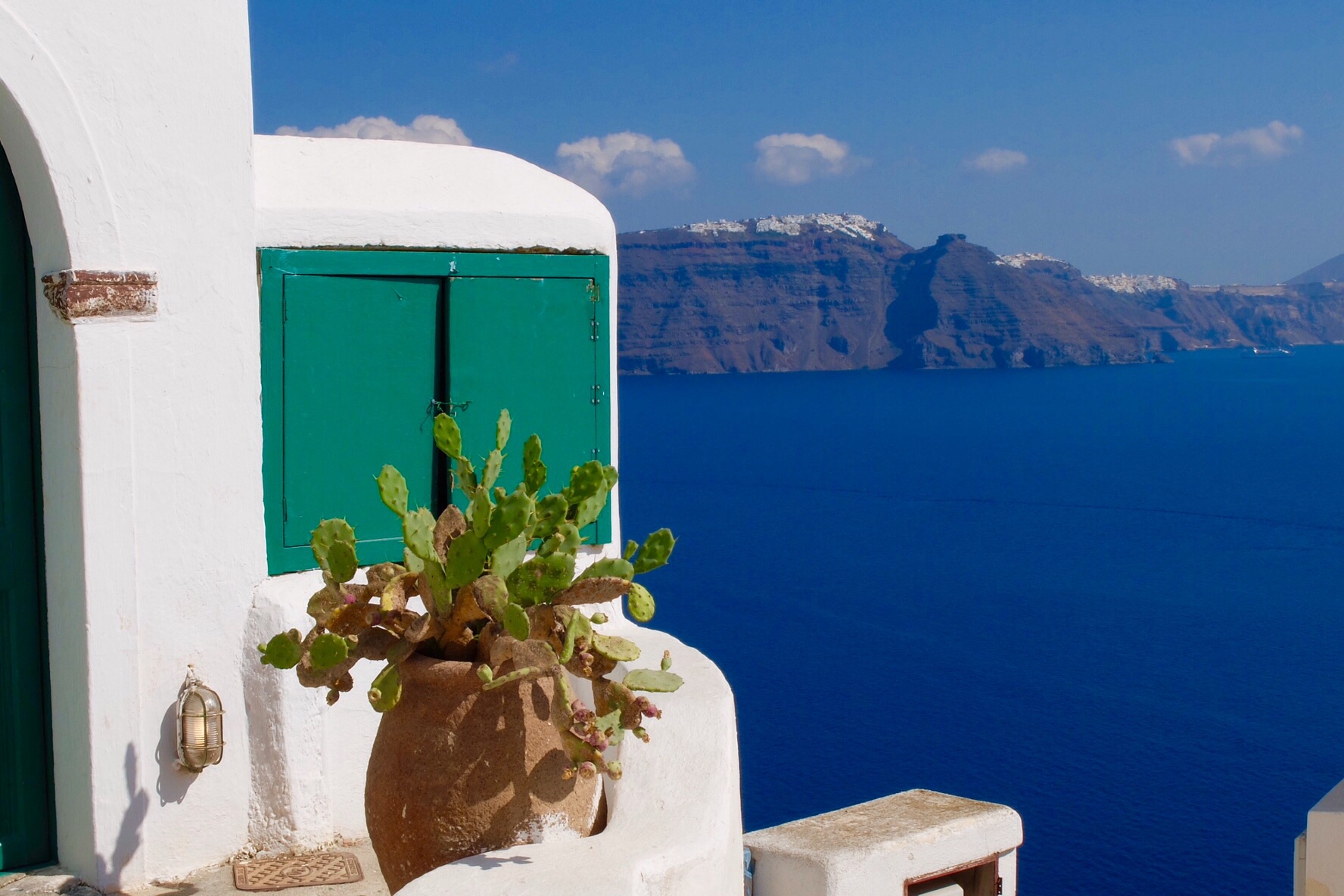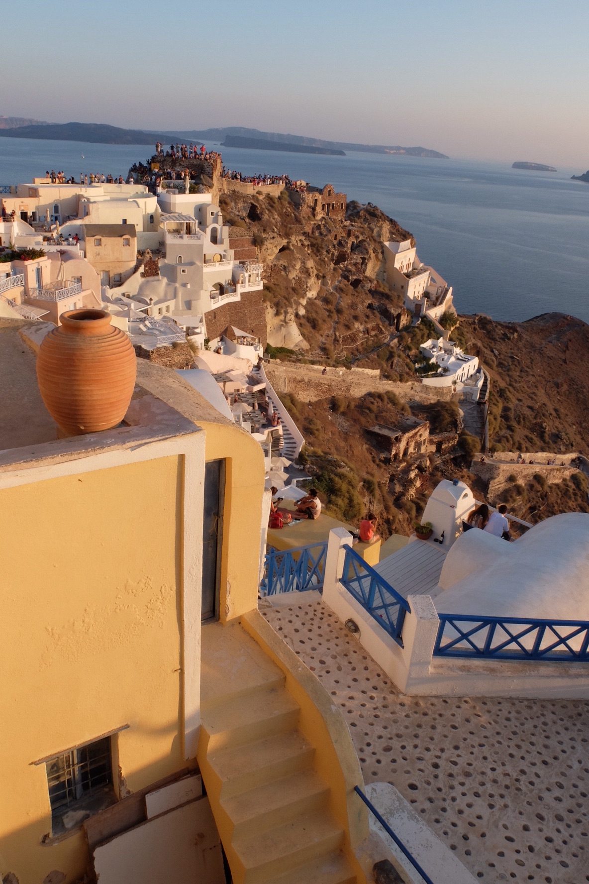 We were met off the taxi by the airbnb “porter” who directed us to the cave. He gave us a quick run down on the area. The very crowded lane we were in (there were five cruise ships down in the crater and it was peak hour, the “roads” were chocked with buses) was main street, the sunset was that way and that was all we really needed to know.