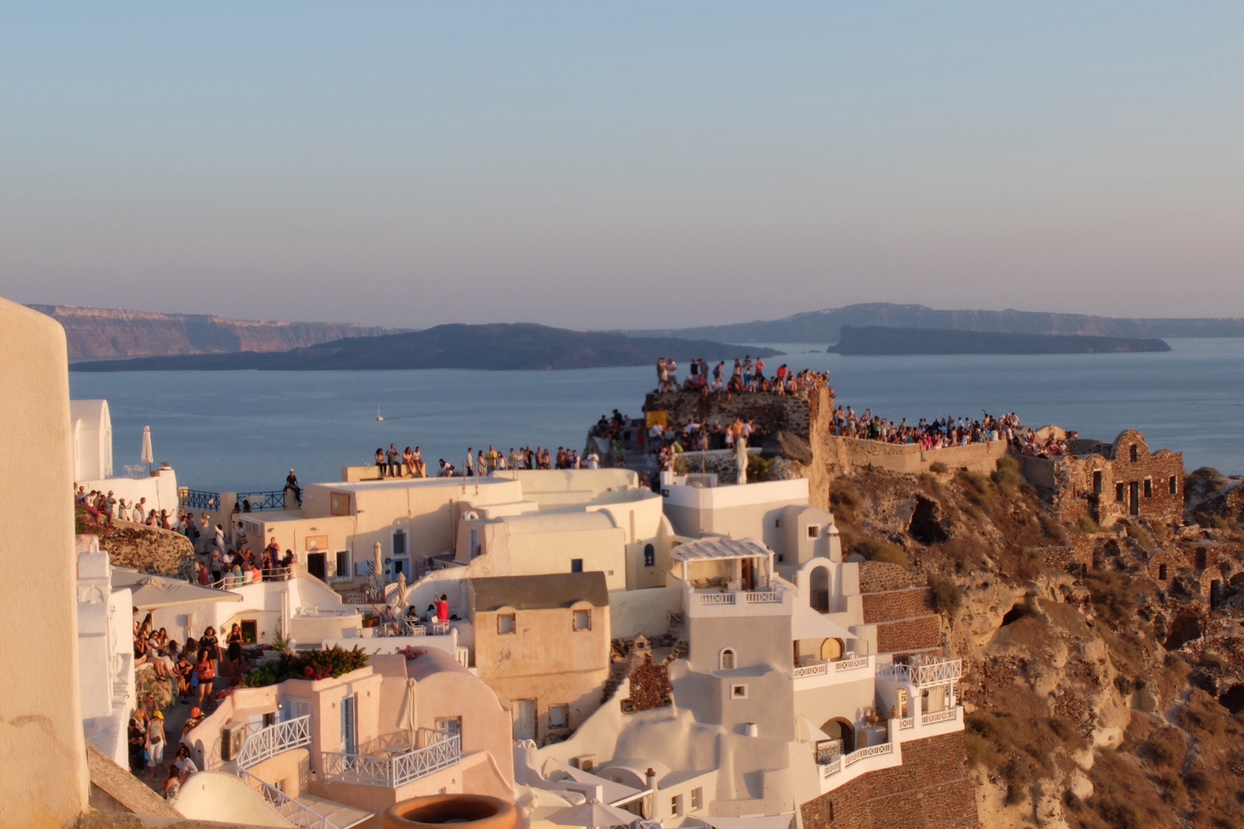 Well the sunset was apprentaly a BIG deal in Santorini so we decided to go down and check it out at the designated hour that the sun was due to sink below the horizon. Wow, did we need reservations? The pathways and tops of houses were shoulder to shoulder with people, it was like going to a major sport event. When the sun finally sunk, the crowd broke into applause, it is the first time I have ever heard nature being applauded.