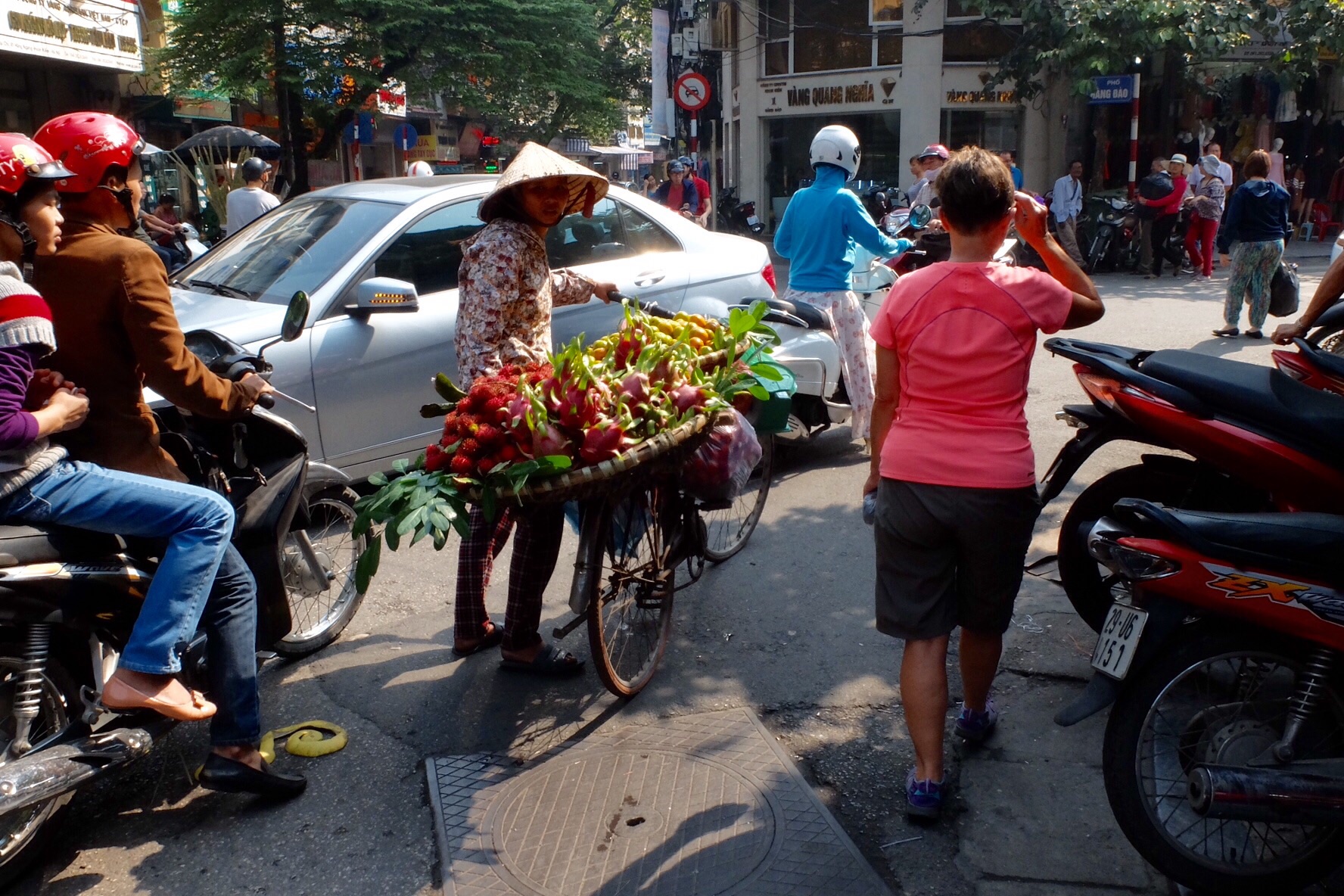 On the taxi ride in we were excited to see people in the fields in their conical hats, how Vietnamese, and by the time we hit town we were reaching for the cameras to take photos of the extraordinary traffic. Little did we realise that was just the beginning.