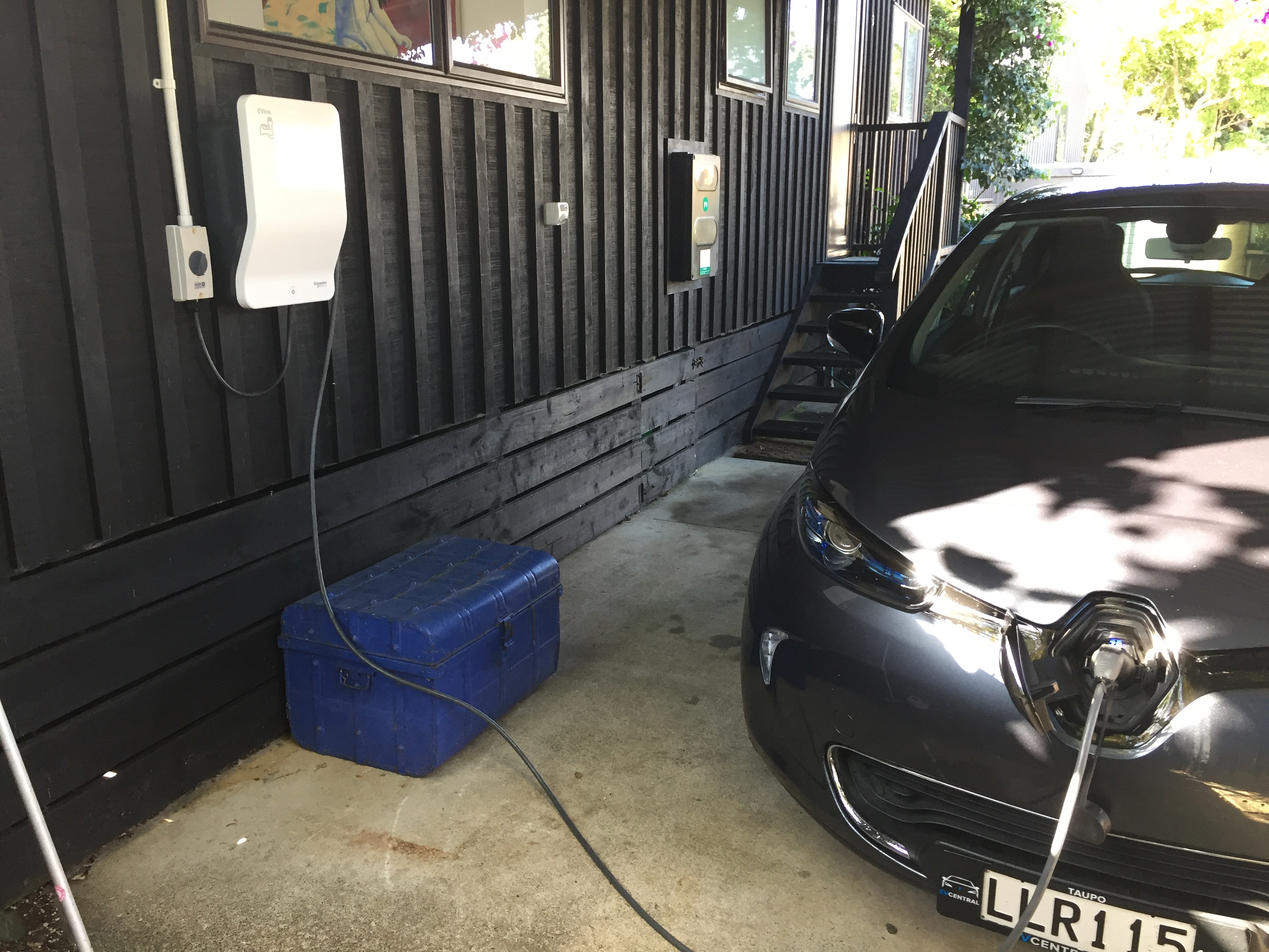 - Why free charging? Well the Zoe can only use AC charging. The only charging network in NZ (Chargenet) provides DC charging only. We cannot use this DC ( you pay by kilowatt & time spent on the charger) network. There is a (very slowly growing) network of AC chargers that are designed for those who want to top up while shopping (or having a coffee) and are located in shopping centre carparks or public car parks. For the latter, you will usually pay normal parking building fees. While these deliver a slower charge, they have one or two Type 2 (pretty much the standard) sockets and provided you have a cable with a type 2 connector – you can charge on these. For the Zoe, this cable is a standard and we can generally fully top up our battery during a road trip in the time it takes to have a coffee, browse or a short walk. Most EV’s in New Zealand are Nissan Leafs – they do not have a standard type 2 cable and are reliant on the Chargenet ‘fast’ chargers or slower chargers that have a tethered cable that suites the Leaf. This is good for us, we avoid the busier charge points and usually find the Type 2 sockets deserted. The downside, is that in some parts of the country these (type 2 socket) outets are ‘thin on the ground’.
