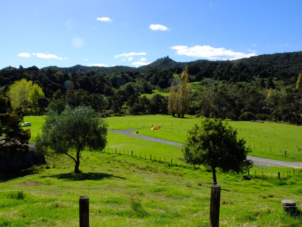 After a coffee and rather sticky muffin In Okaihau I joined the Twin Coast Cycle trail for the ride to Horeke before heading up the valley to camp for the night at Wairer Boulders.
