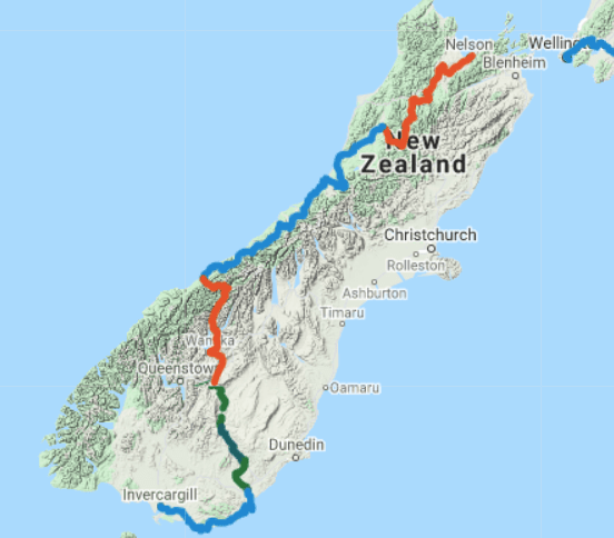 The reintroduction of the temporary direct flights from Kerikeri to Wellington has given me the opportunity to get to the South Island and resume my Tour of Aotearoa, albeit, not quite in the sequence that was originally intended. For those of you that are interested, you can see my intended route on the Google map below. Click on the image to load the map.