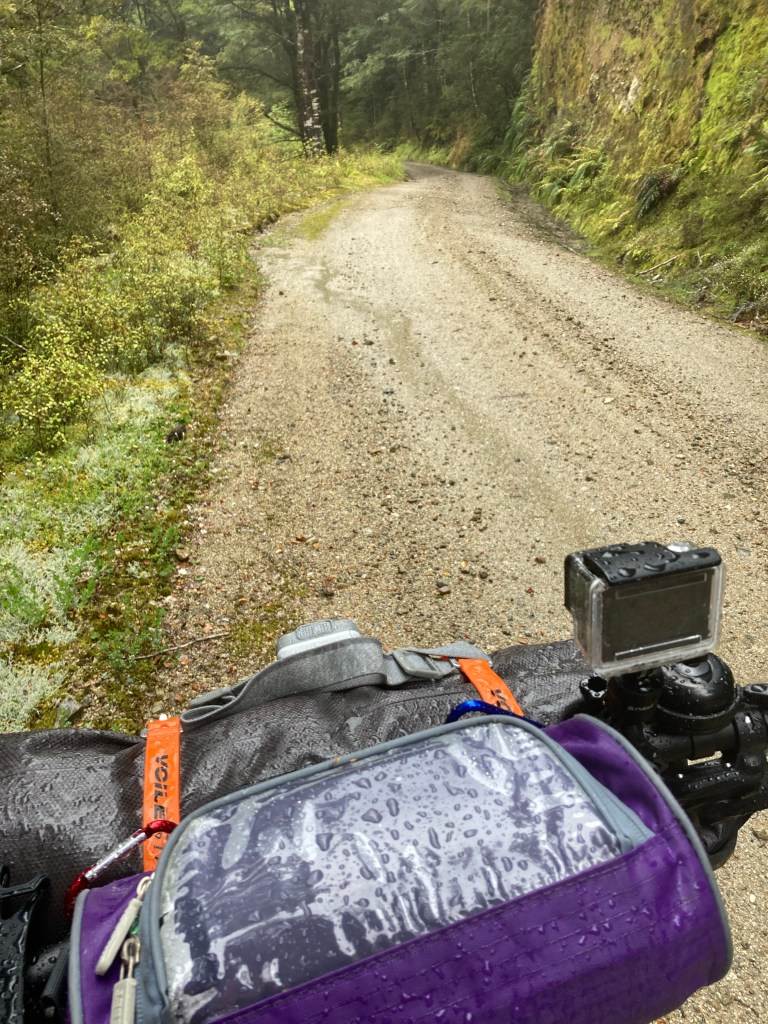 The weather was brilliant for the first three days but yesterdays ride over the Maruia Saddle (goat track is a generous term) was undertaken in weather that really tested the water resistant qualities of my gear. Fail, was the term applied to most. My bag leaked, the dry bags got wet, my waterproof socks failed the test of stalling the bike mid river and my judging of layers got a big fail when, in a sodden state, the wind chill of the downhill had the teeth rattling.
