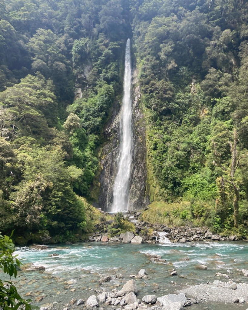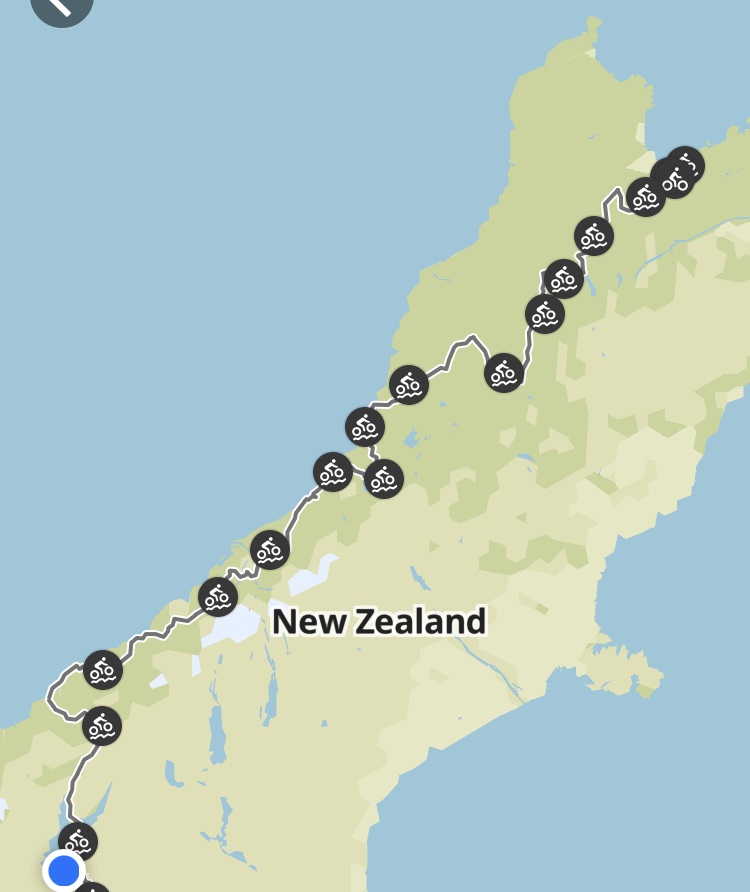 The next day I had the 83km ride over the Haast Pass and like the day before, the pass comes at the end of the ride. I have ridden over the pass on an electric bike which protested at the very steep start of the climb. Laden and without pedal assist, that section was an even bigger challenge, not helped by roadworks. It was a single lane, traffic light controlled, section of about 1km. There was no hope of getting up the steep gradient in my allotted time so I had to dodge the odd oncoming vehicle. I got out of the traffic lane and rode inside the cones as far a I could. Once off the bike the gradient was simply too steep to try and get any forward momentum from a standing start. I pushed the bike about 50 meters to a slightly better slope and I was away again. The night was spent in yet another deserted tourist accommodation operation where the previously busy restaurant and bar was mothballed. It was another uninspired dinner & breakfast.