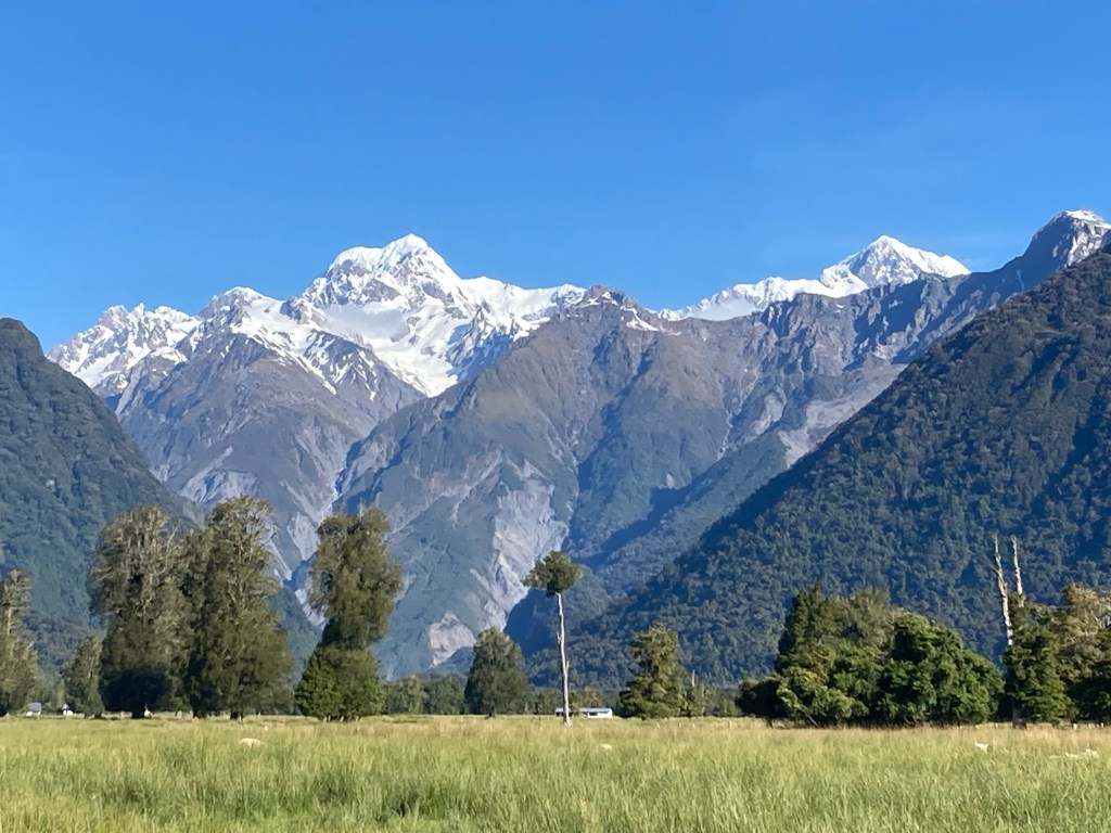 The redeeming factors were; the lack of traffic, the fabulous weather and, as a result, the stunning scenery. The snow capped alps were my companion when I was not riding through magnificent stands of Rimu and Kahikatea bush or around edge of bush enclosed lakes.