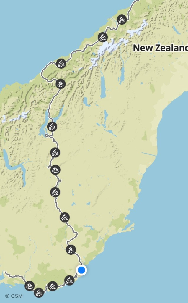 1. Wow Cliff, what a fantastic ride! We recognise many of the places you’ve described – Lake Dunstan trail, some of which we did a couple of weeks ago, Clutha Gold, Lawrence, Kaka Point and Nugget point, which we biked (Clutha Gold) and visited pre-covid. We are very sorry we were not able to stop and talk to you when we saw you as you were heading into Hawea, and we were heading towards Haast (by car) on Friday 3 December. It would have been great to chat. I have been following your progress via your and Ruth’s photos on Facebook, and have been very impressed with your courage, ambition and persistence. Good luck for the rest of the ride, and safe return home.