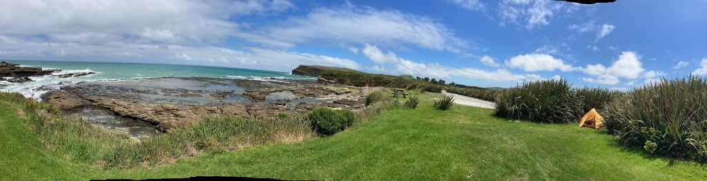 The ride from Kaka Point was leisurely and pleasant. Cold starts and then cool sunny conditions. The roads were empt, On one I never saw a vehicle for 25km – admittedly it was a pretty awful road. But with quiet roads you also find what few services there are, closed or operating on limited hours. I had the ration my meagre supplies and deal with my caffeine deprivation. Owaka had 3 cafes – all closed on Monday when I biked through planning to have breakfast in the last town of any size for several days.