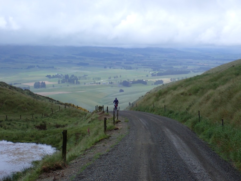 Howard is very positive and was sure the rain would ease by our delayed departure time of 9:30am, the forecast indicated it would ease around 2pm. The forecast was correct and after about an hour we were pretty cold and miserable, the tarmac had been replaced by a combination of soft sodden gravel or just mud, and progress was slowed even further by a couple of seriously nasty hills. Given the circumstances, one had the very inappropriate name of Mt Gay. There was no rainbow at the end of that climb or the even bigger climb after it.