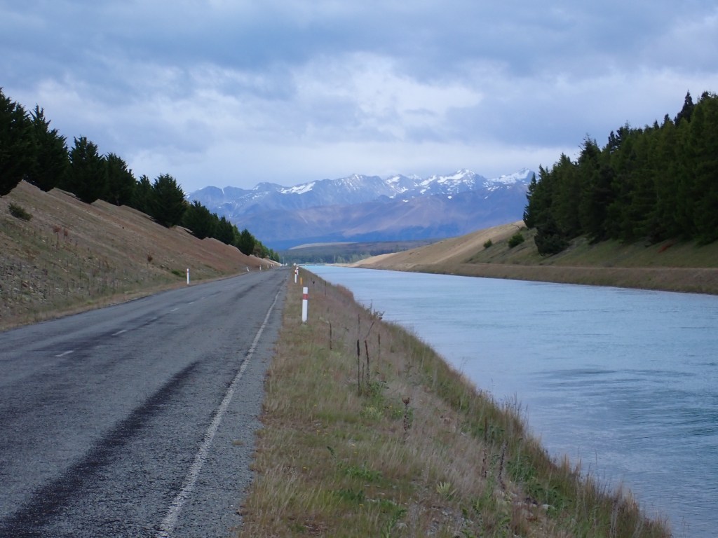 Fantastic ride to Twizel, short, downhill, mostly a tailwind and amazing scenery. When I say that it was mostly a tailwind, there were a couple of section where it was a challenging cross wind. Wellingtonians would call it a zephyr but we wimpish northerners considered it to be cyclonic. We reached a very exposed section where we were informed that in high winds you should take the ‘low route’. We briefly debated the status of our particular wind, took into account the fact that the low route has a steep climb to get out of it and gambled that we wouldn’t get swept into the valley by a violent gust. Howard went first and was riding on a 45 degree angle, the bike leaning into the wind. My lighter bike required me to lean so far over that I was nearly scraping my shoulders on the gravel. We made it and we’re rewarded when we met a poor chap from Oxford heading uphill into the wind. After giving him the rather gloomy report on conditions where he was headed, we picked up the fantastic downhill to Lake Pukaki and over lunch marvelled at the engineering feats involved in the massive hydro scheme between the lakes.