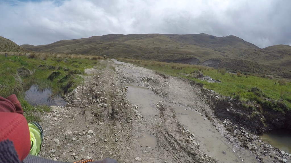 The saddle was just the begining. After a descent of around 500m we then had 60km of extremely challenging road (or lack of) and a further 500m of climbing through to Garston in Southland, not to mention 23 river crossings. By the time we arrived we feeling like real adventurers with very wet and cold feet.