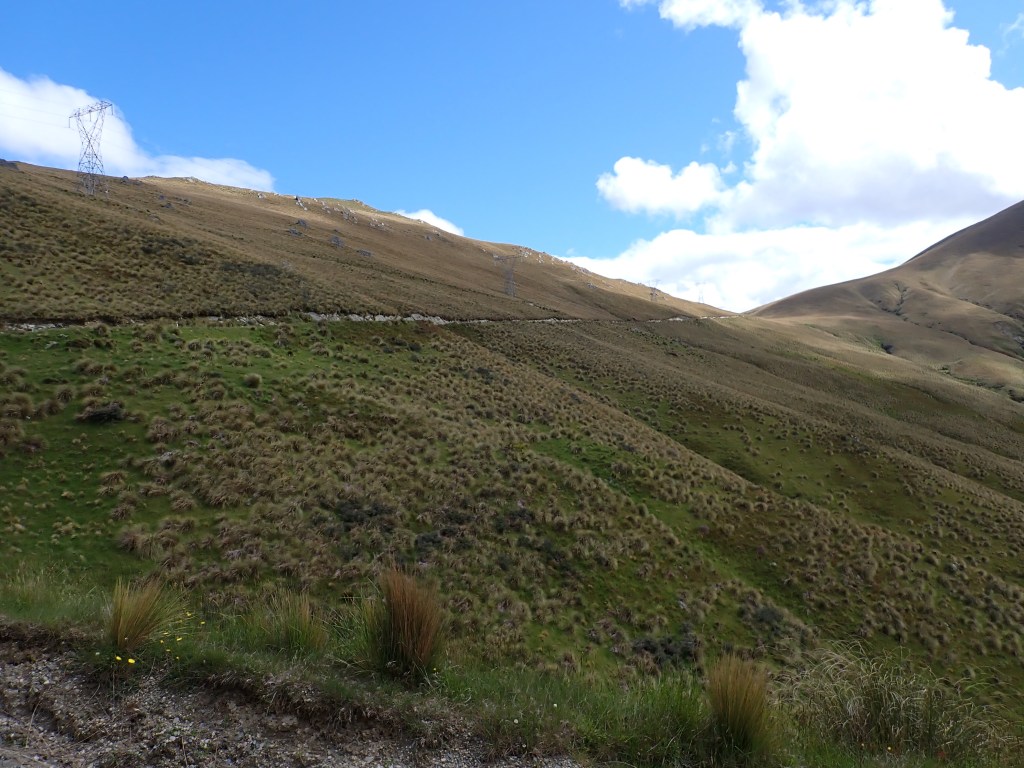 The strategy for our biggest ride of the tour was that I would leave an hour before Howard. Our first objective was Duffers Saddle ( appropriate name) at 1,280m elevation. It was steep and I had to walk the sections where the gradient was up at 20%. Howard caught up to me 2/3rd of the way through the climb. It was tough but very rewarding as we hit the summit with the Nevis Valley spread out below us framed by the Remarkables on one side and the Old Man Range on the other.
