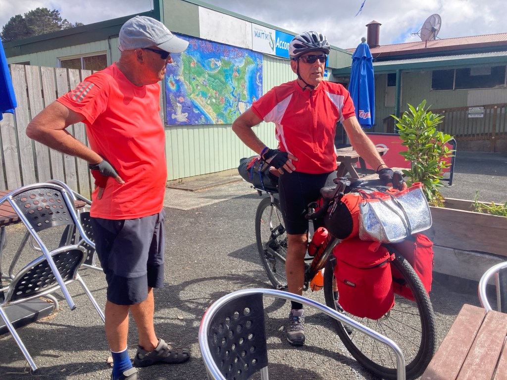 At Taputaputa we had met Rene Heyde (Recycled Rene on social media), a Commonwealth Games bronze medalist in track cycling at Christchurch in 1974. He has also been riding for charity on previous adventures. He had bussed up to the Cape on Wednesday and Thursday was his first day on the way to Bluff. We kept each other company for the hot and hilly 77km back to Houhora.