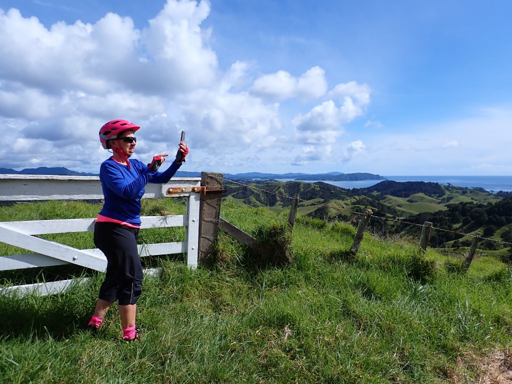 Fortunately we had to bike back past the camp so were able to retrieve a cool pad we left in the freezer. Then we hit the relentless and steep little hills around the outer Bay but this time the weatherman obliged and gave us a beefy tail wind once we turned south to Whangaruru Harbour.