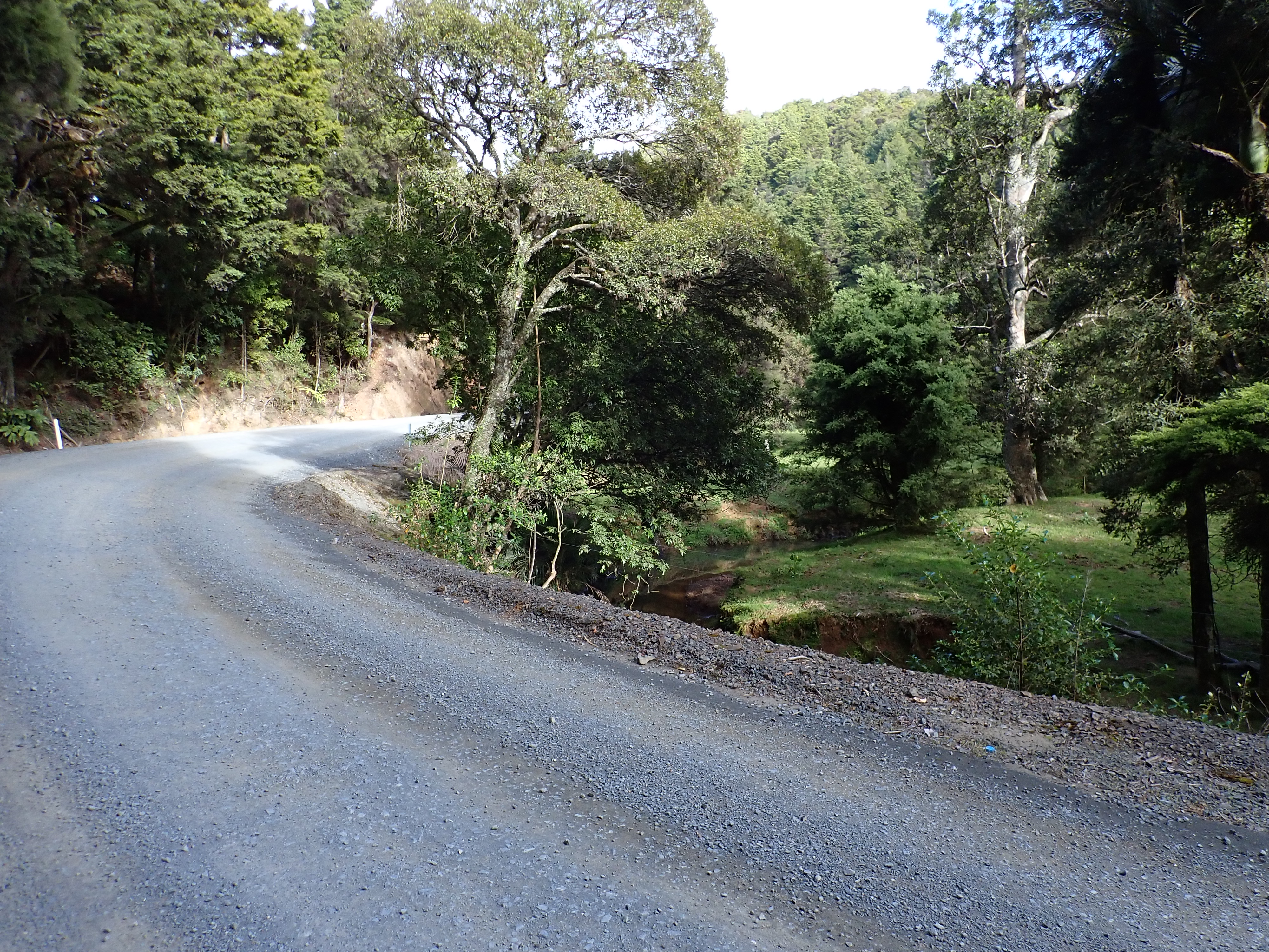 The forecast for our ride through to Whangarei was again bleak with gale force southwesterly winds predicted. You guessed right, our overall heading for the day would be southwest. Our new bridge-less and longer route added another 8km of predominantly hilly gravel road to the trip. However, this was good gravel and the RA was starting to accept that maybe my advice that not all gravel roads have the primary purpose of dumping old tandem cyclists off their bike.