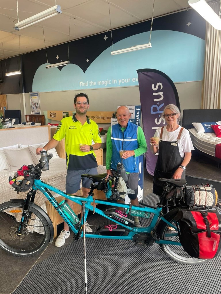 I was able to get my next ride to Kimbolton off to a great start when I visited Therese’s (from Bald Angels) sister and nephew at their businesses in Palmerston North. They offered me a coffee and a cheese roll (apparently they are also a Palmy thing) and gave me a bike care pack to keep me going, I was pleased that the RA was not with me as I would probably still be in Palmerston North trying to find her in Furniture Fair. It was the type of place that she would get lost in for hours.